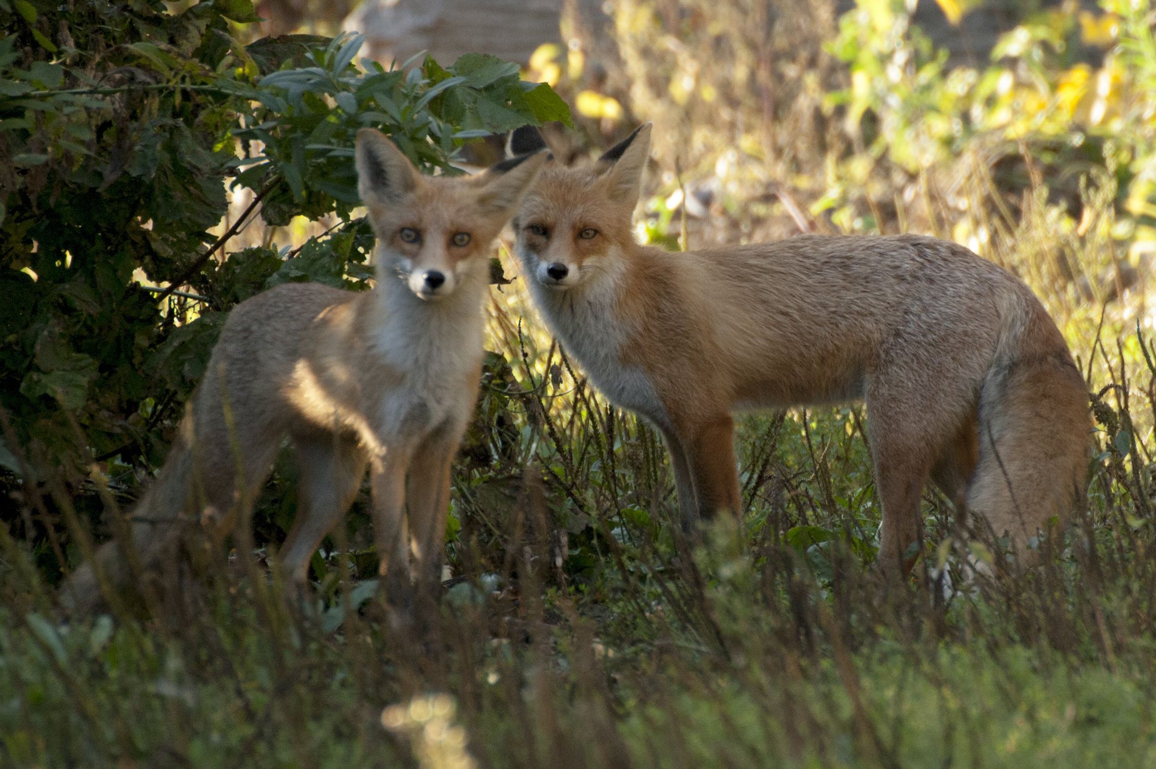 вечерком сидели со своим знакомым лисёнком на вырубке он вдруг насторожился и тут вышла как я понял его сестра.я уж тихонько сидел,а потом она осмелела и они начали играть.где-то минут через 20 ушли в лес,ну и я пошёл домой чёб не мешать им.