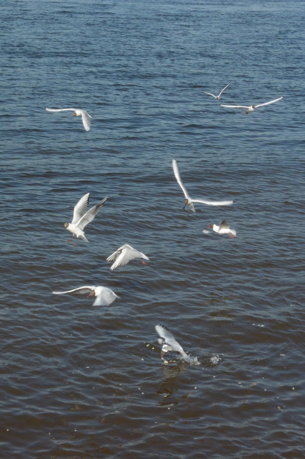 Голодные чайки атакуют хлебные крошки
