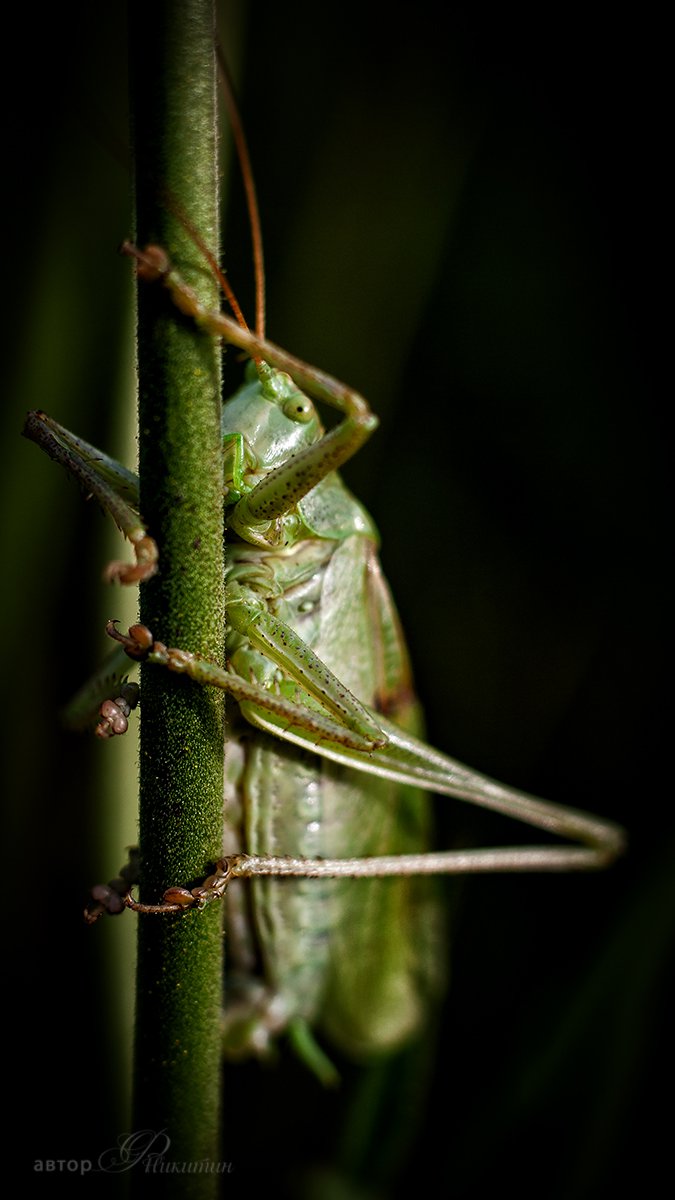 Утром на лугу встретился лицом к лицу с незнакомцем из отряда кузнечиков. Сделав несколько кадров я попрощался с ним.