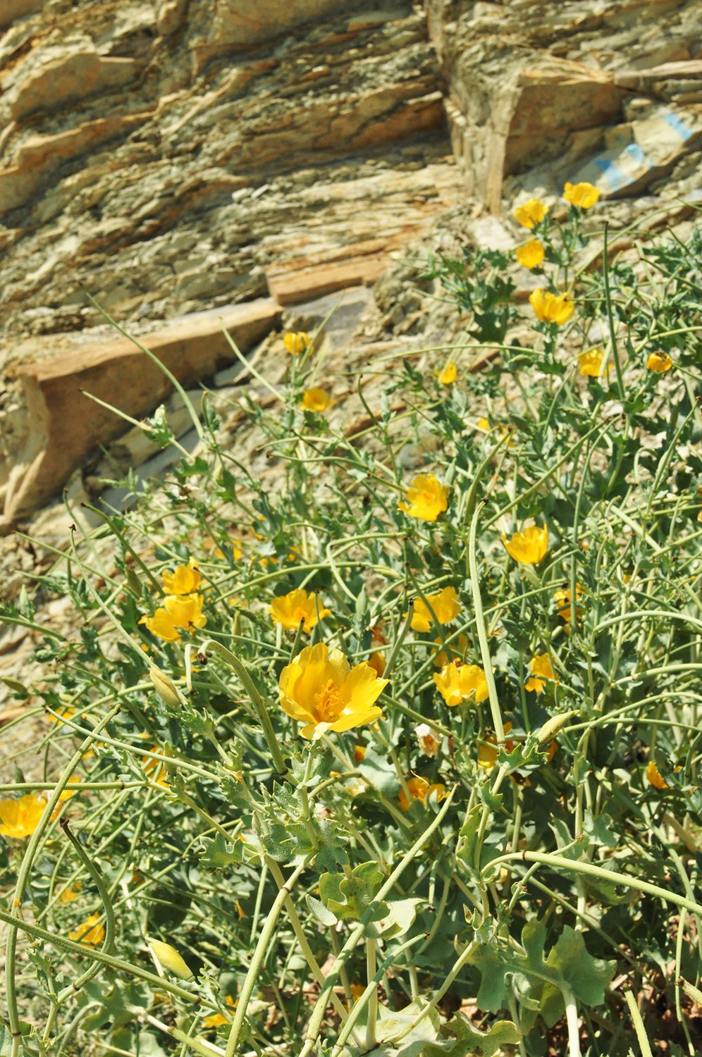 Жёлтые цветы растут на горной возвышенности летом в Анапе