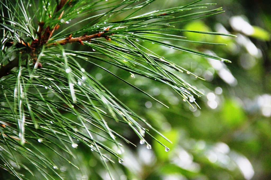 После дождя капли на хвое играют изумительным изумрудным светом, придавая и без того волшебным свойствам воды новое звучание...