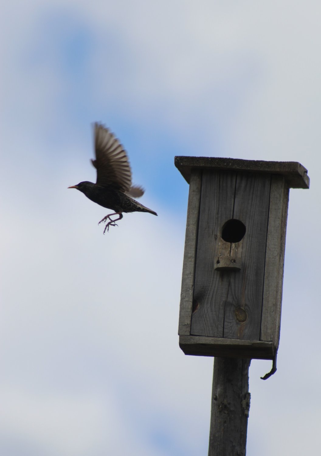 На маршрутном учёте птиц в Природном парке "Река Чусовая", конец мая 2017. Наблюдали, как скворцы ловили насекомых и приносили добычу в скворечник.