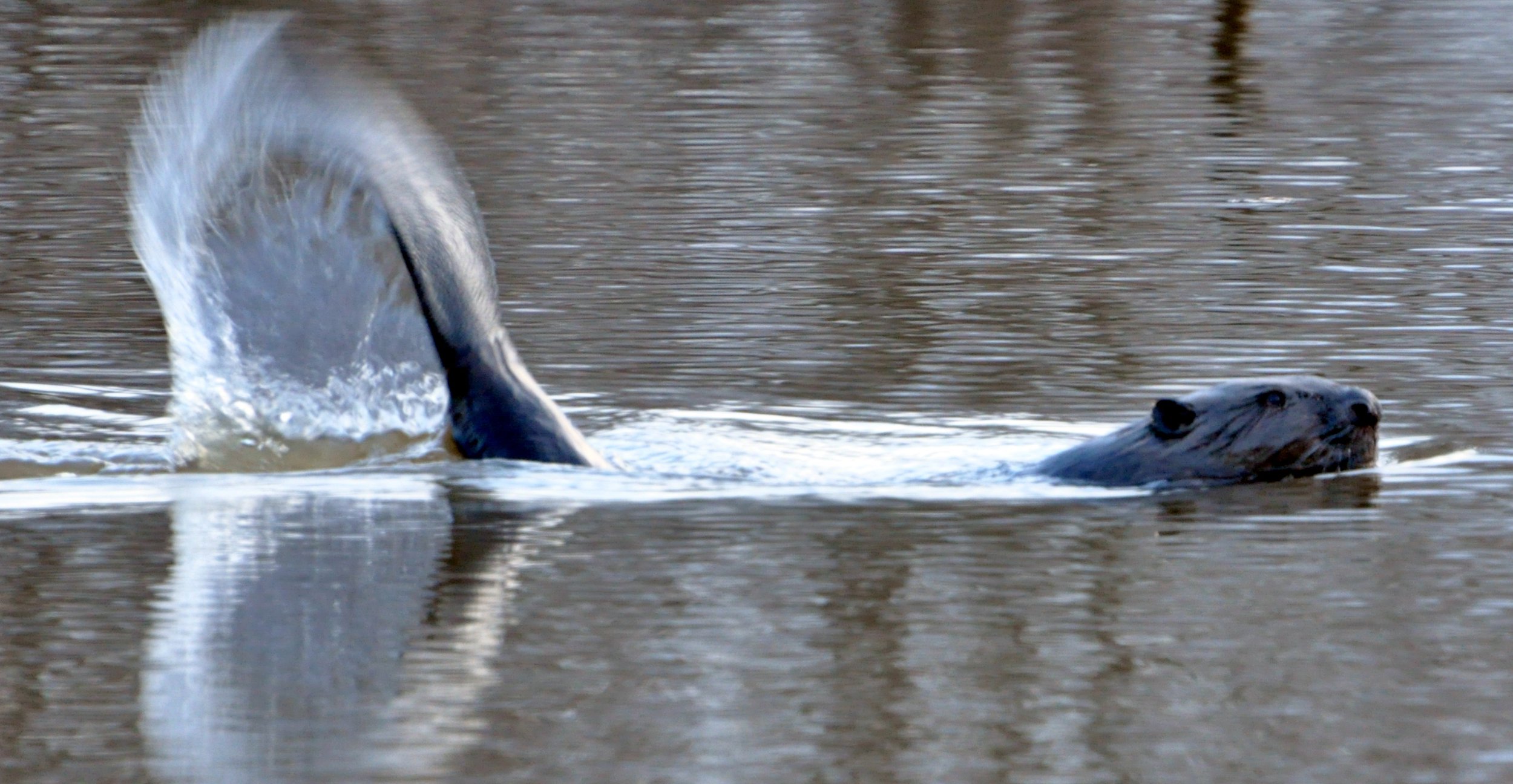 Весной бобры расселяются. Считается что бобры - звери безголосые, однако и им надо общаться между собой. Для этого им служит хвост. Вот и на снимке самка бобра проплывая мимо шлепала по воде хвостом, видимо показывая свое отношение к фотографу. Судя по снимку - сердечное отншение.