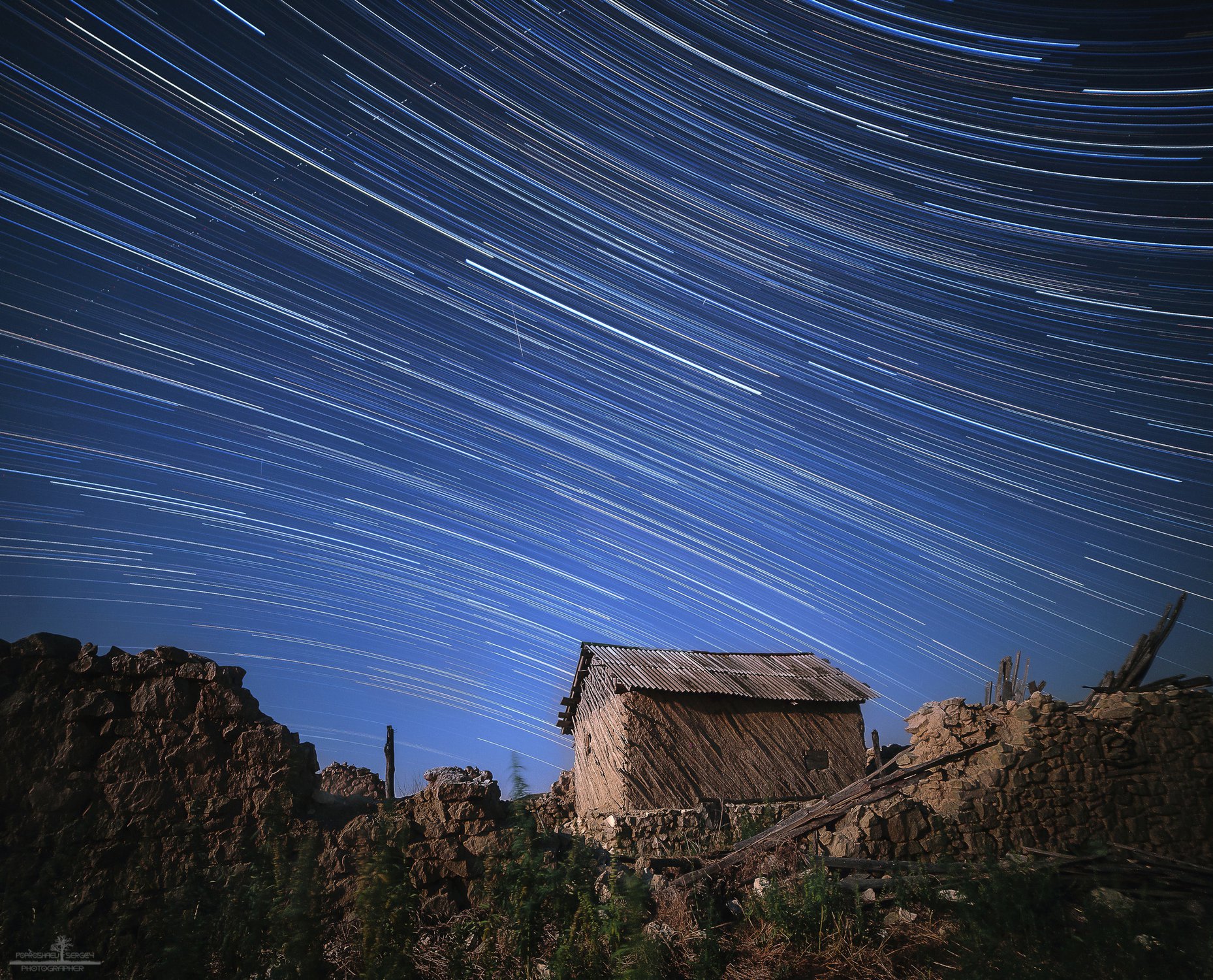 Ночная экспозиция, с выдержкой в 2 часа, уже известной Вам хижины монаха. На охоте за персеидами с 13-14 августа в любимом, Донском парке. Как обычно, 95% пролетали за кадром, но и это того стоило.