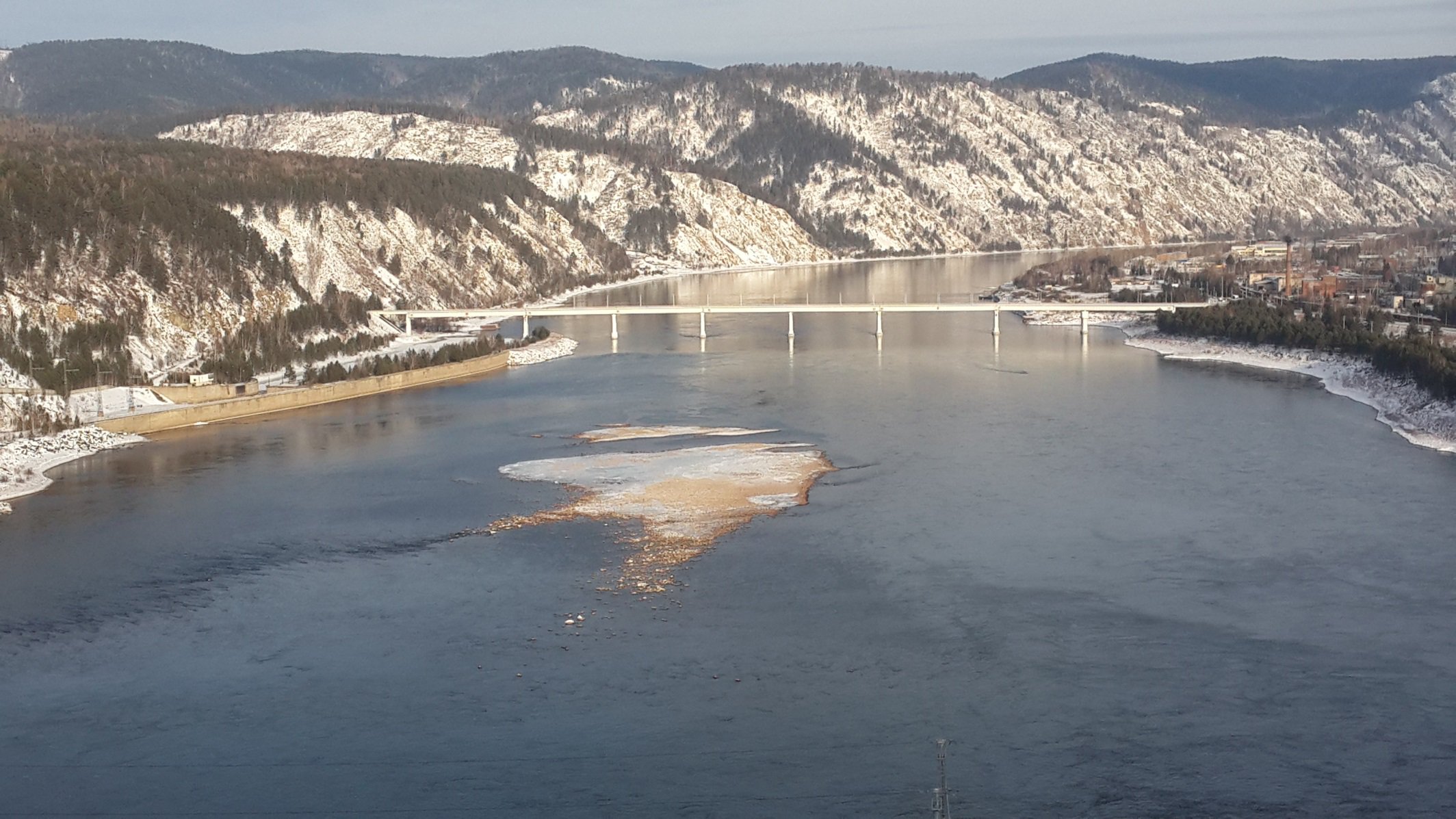 Вид с гребня Красноярской ГЭС