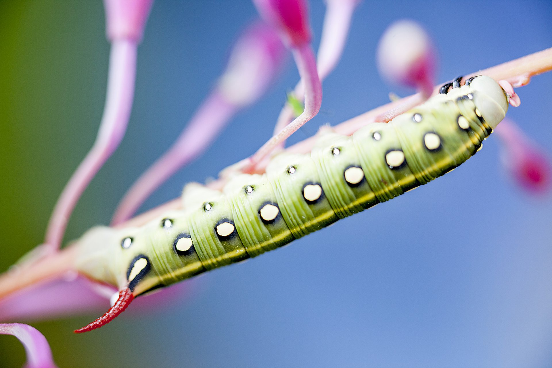Гусеница молочайного бражника. Canon 5D mkII, EF 100mm f/2.8L Macro IS USM, f/2.8, 1/400c, ISO-400