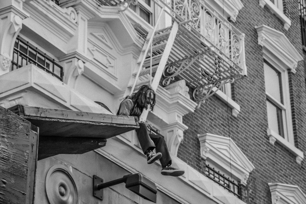 Окружающие нас события довольно часто становятся интересными и необычными, достаточно внести в них немного странности. Этот человек непонятным образом забрался на парапет и наблюдал выступление актеров какого то бродвейского шоу.