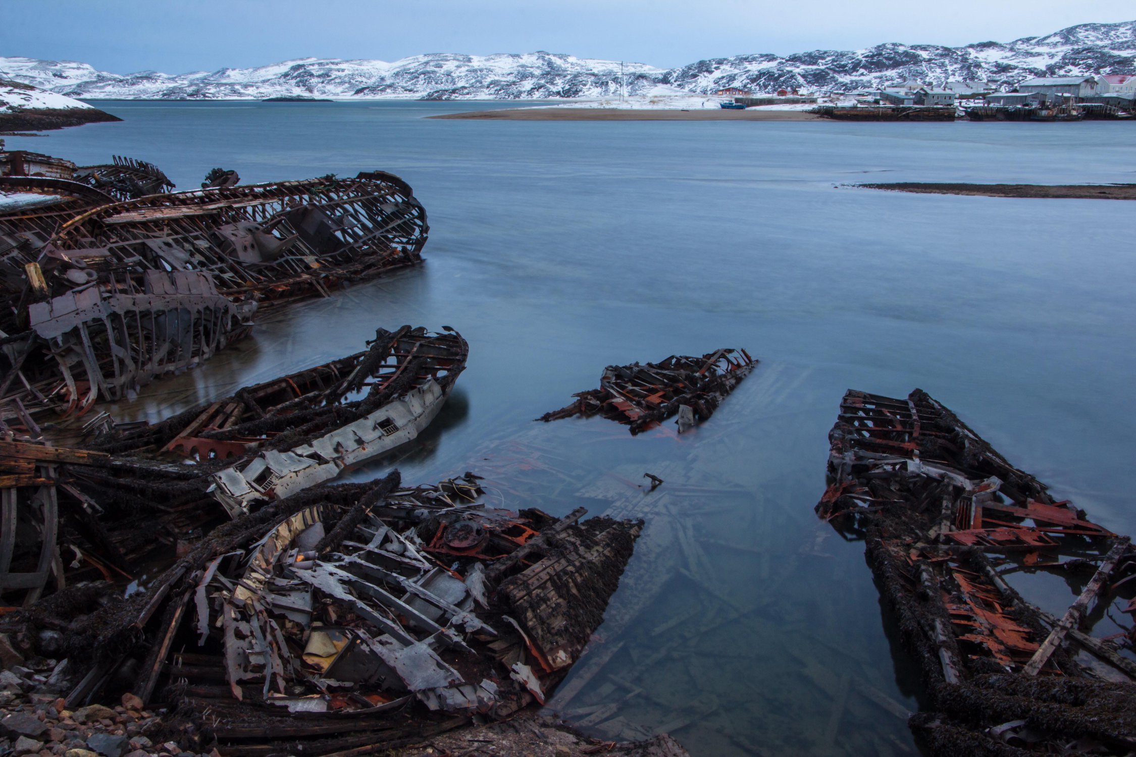 Городские пейзажи, как и города России, могут быть разными. Подобную картину можно достаточно часто встретить на севере нашей страны. Основной достопримечательностью поселка Териберка Мурманской области является кладбище кораблей.