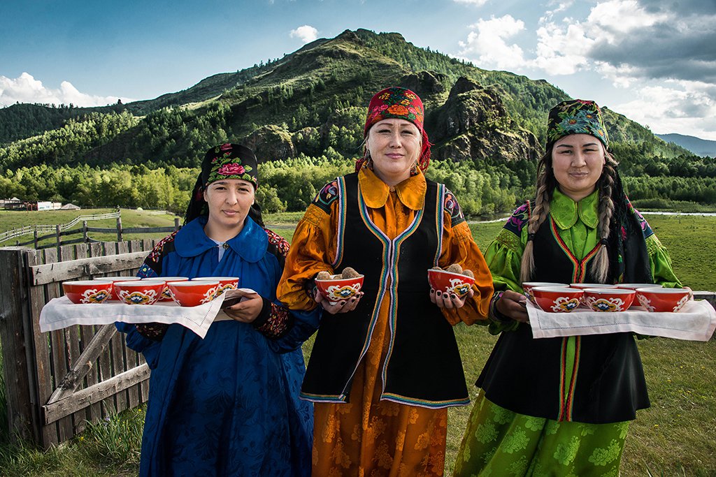 Хакасское гостеприимство. Встреча участников экспедиции национальными блюдами: талганом и айраном.