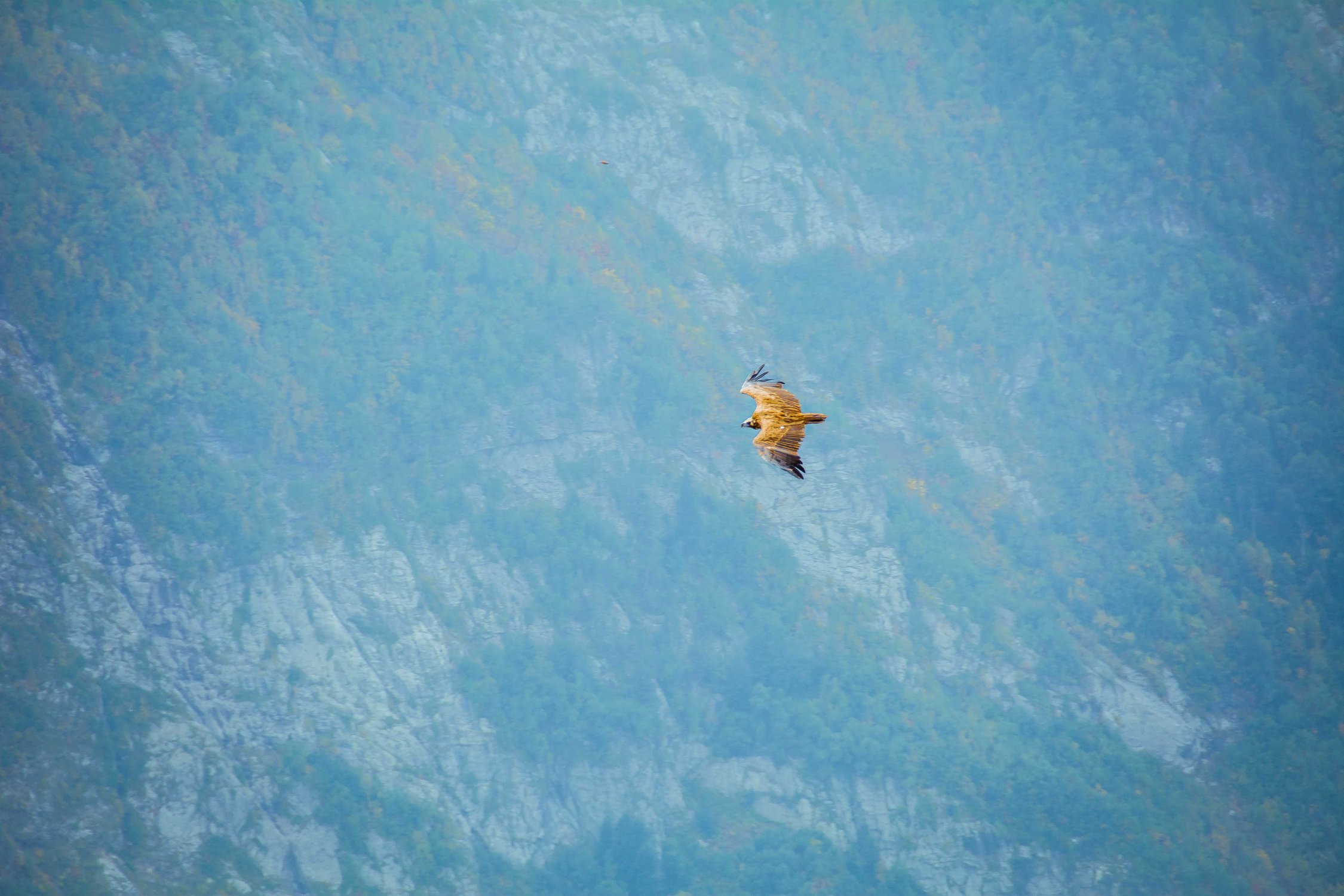 Невозможно передать словами то чувство, когда ты смотришь сверху на полёт орлов, а они летят гораздо ниже того места, где ты стоишь. (Фото снято с очень большим приближением). Дух захватывает, колени немного дрожат, но испытываешь столько восторга..., что забываешь и про страх и про дрожь в коленях. Фото снято в горах Домбая на высоте 3200м над уровнем моря