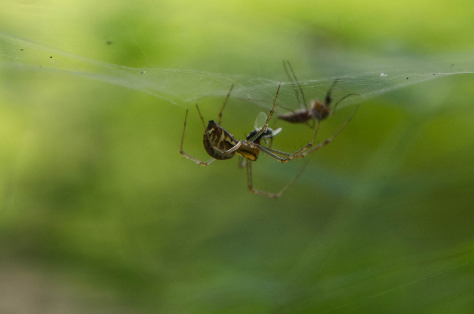 Листовой паук с добычей.