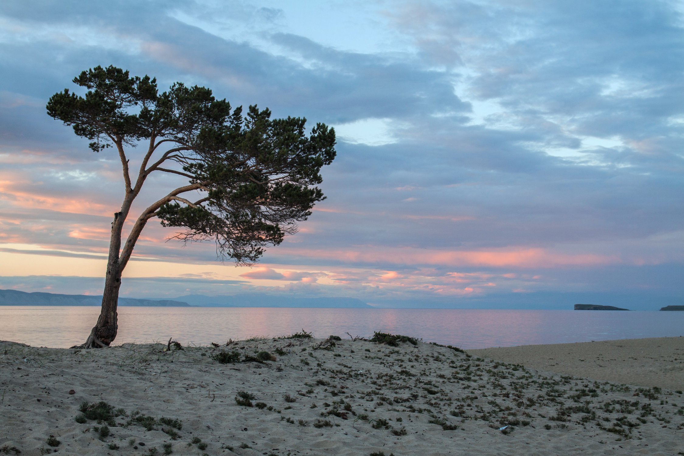 Нежные закатные краски неба над Байкалом