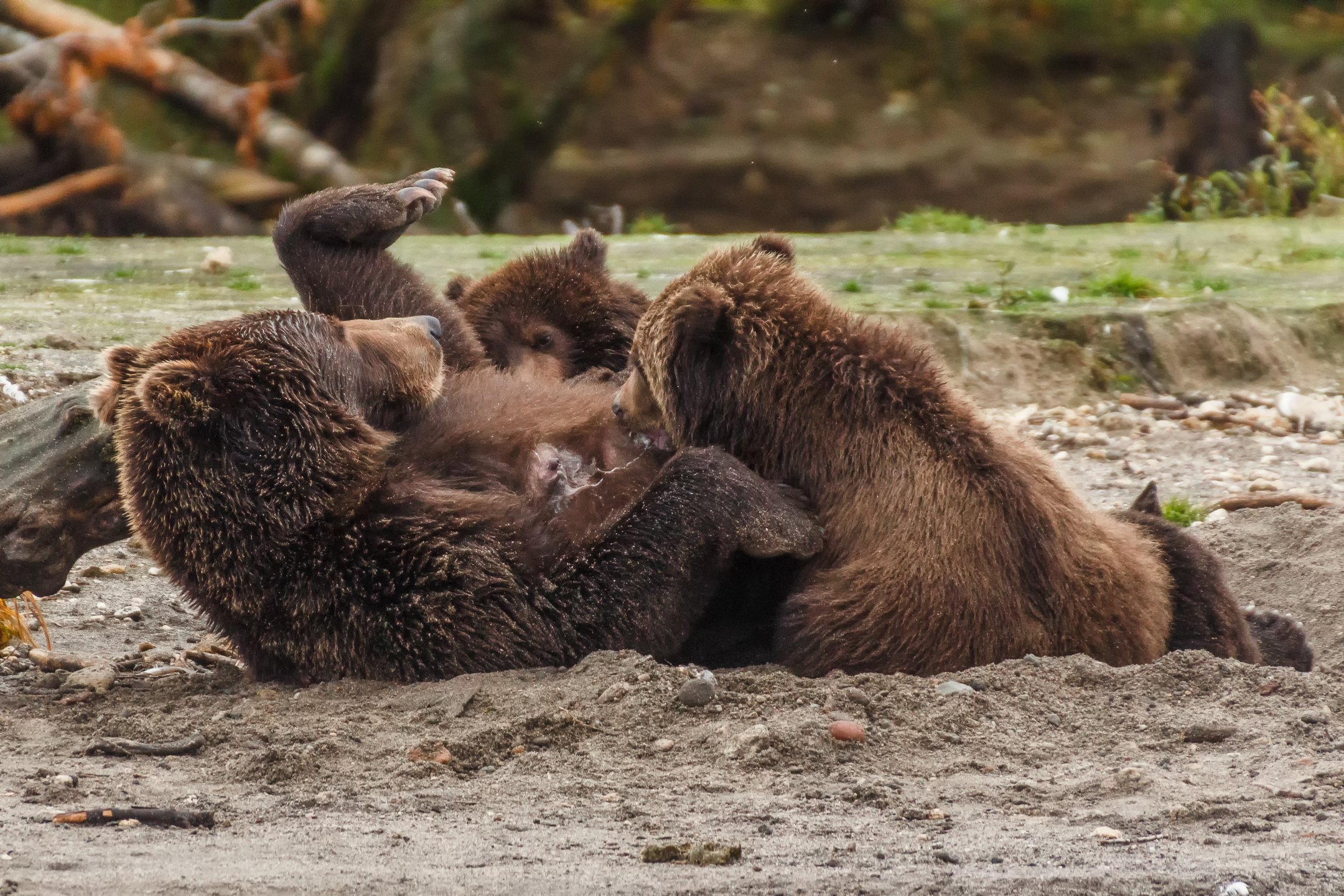 Мамы и детеныши. Заботливая мама. Южно - Камчатский заказник имени Т.И. Шпиленка. Курильское озеро. Бурые медведи.