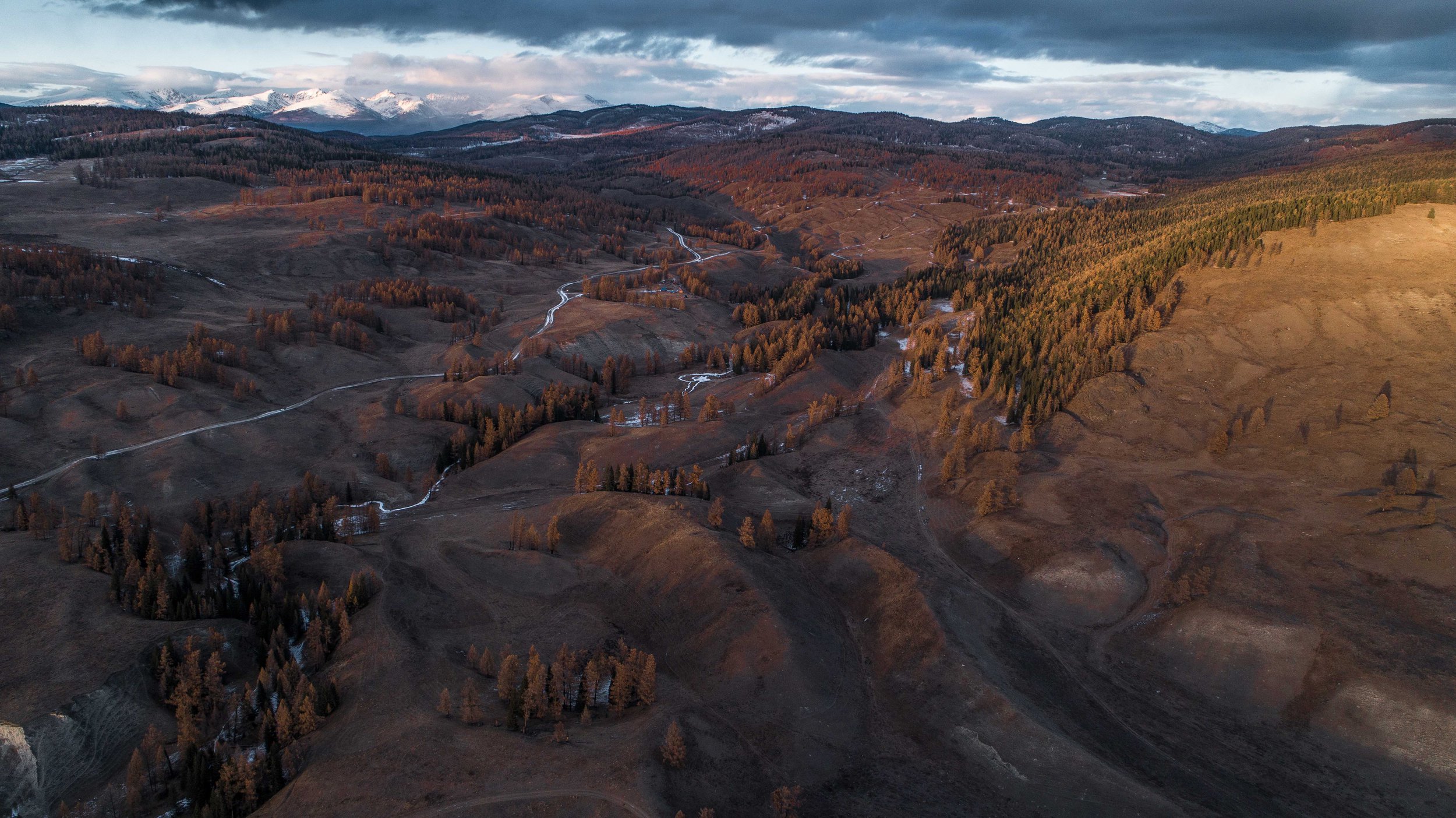 Фотография с коптера на подъезде к долине Чулышман, Республика Алтай