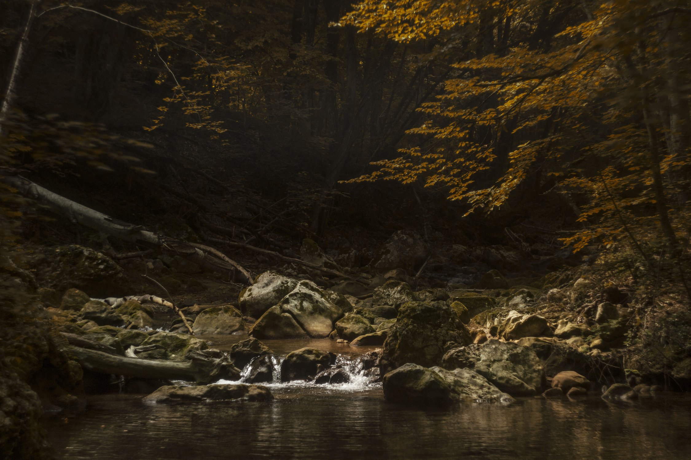 Пытаясь стираться, стою по колено в воде на шатающихся камнях, и замечаю, как тихонько лучи проникают сквозь заросли, освещая вот такое небольшое местечко. Выглядело будто Божество протянуло ладонь: "Посмотри".