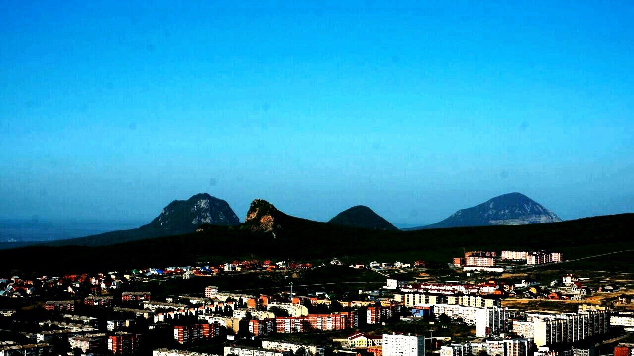 Вид с г. Шелудивая на г. Лермонтов и ближайшие горы лаколиты. Россия