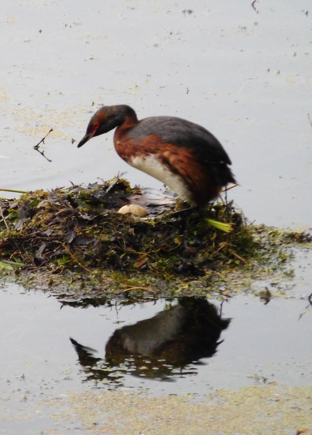Красношеяя поганка на гнезде. Большой пруд Екатерининского пеарка. г. Пушкин. 2016 год. Автор снимка: Политова Дарья