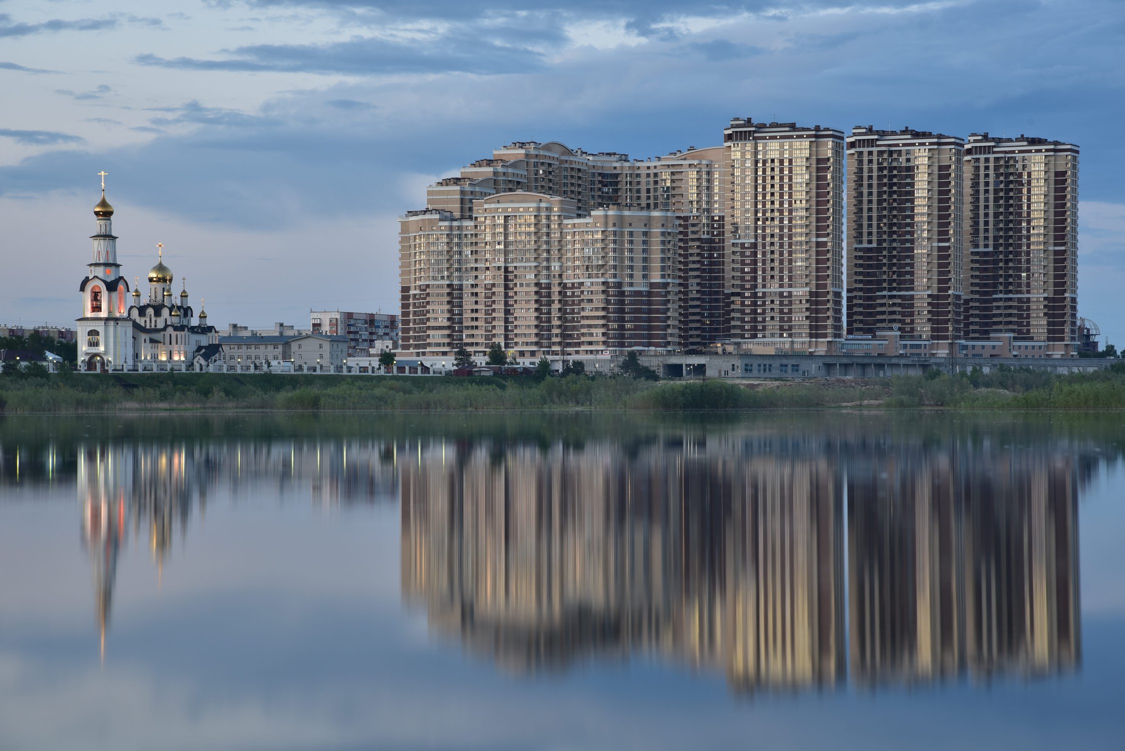 Фото оригинал (без обработки), снято 22.06.2018 22:02 г.Сургут ХМАО-Югра, на фото заснят жилой комплекс "Возрождение" и "Кафедральный собор Преображения Господня"