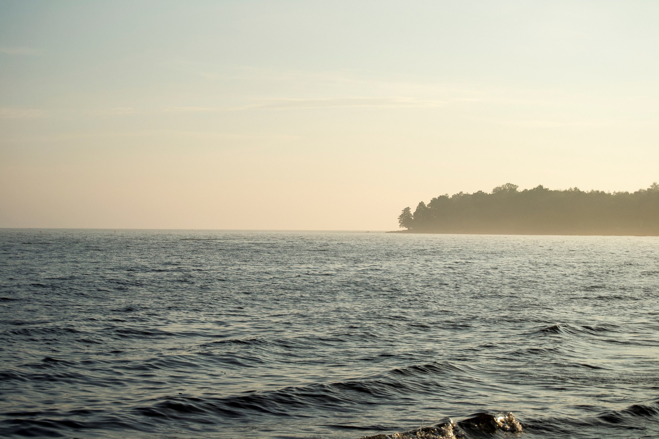 Этот берег выгляднл очень манящим в вечерней закатной дымке.