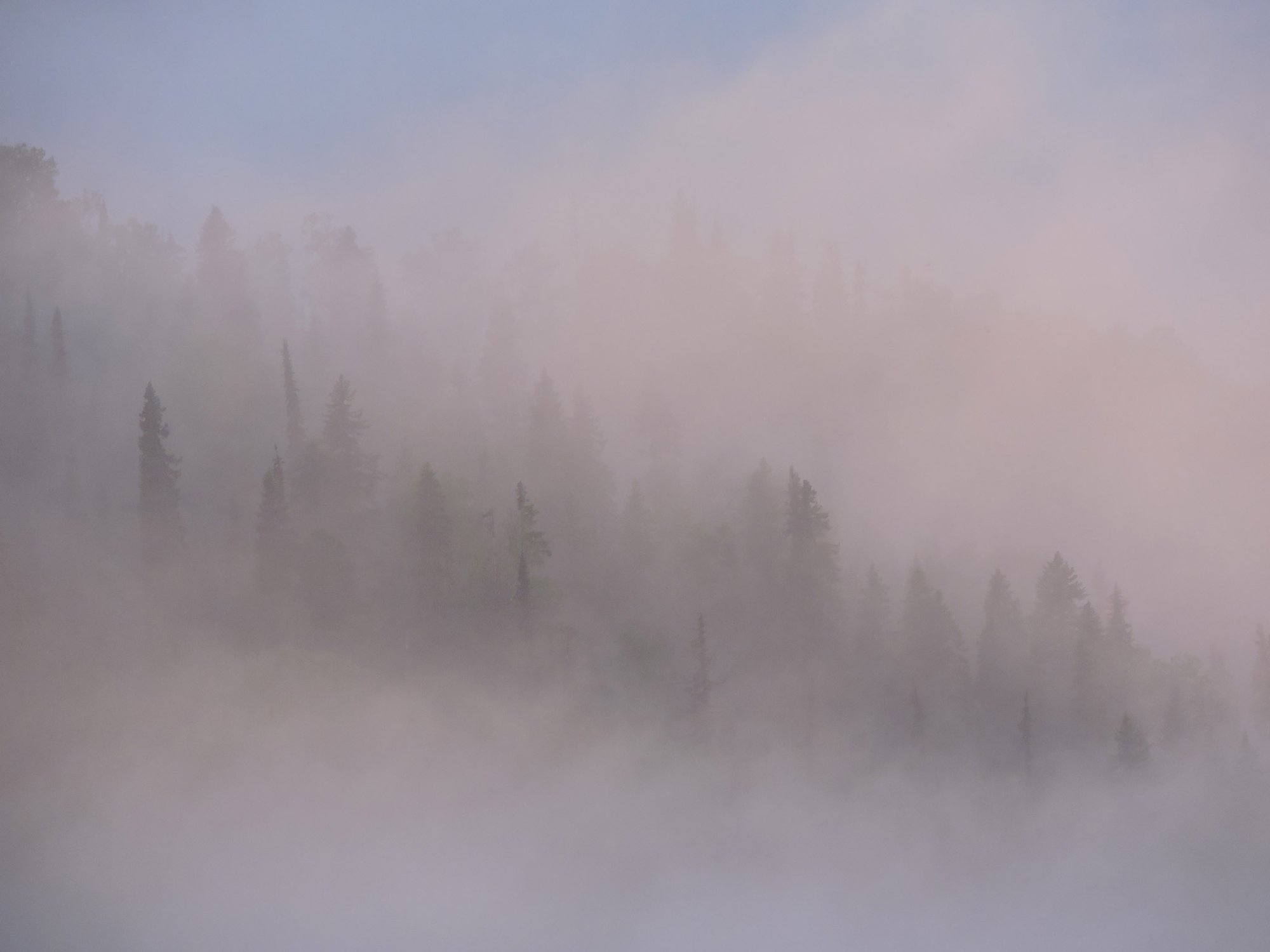 Вечерний туман после грозы неторопливо поднимается над сопками, пробиваясь через притихшую, будто бы спящую, тайгу.