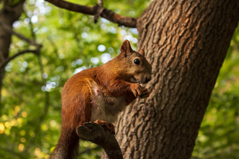 Смелая белочка ужинает