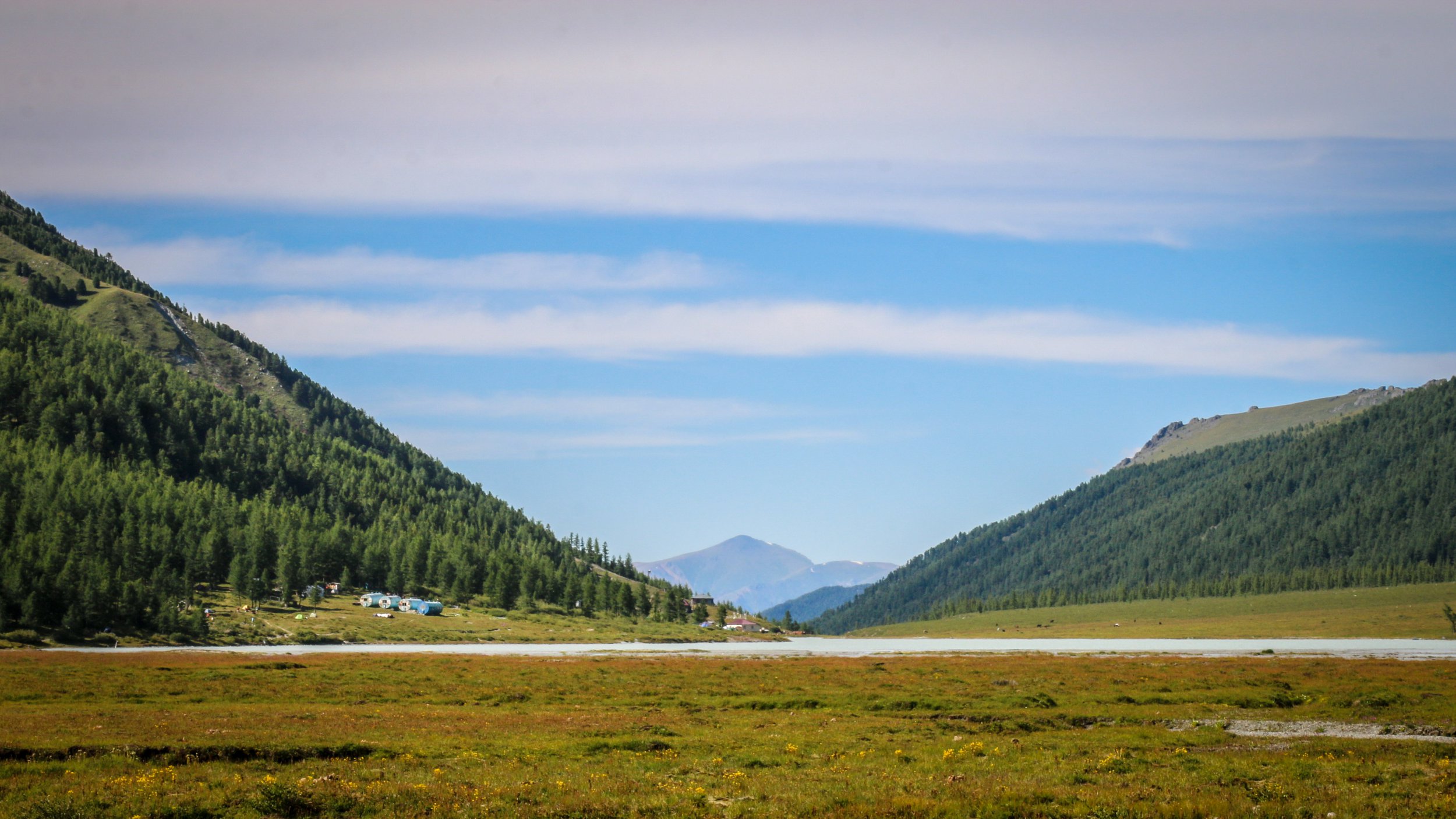 Так выглядит взгляд из долины озера Аккем в сторону реки Катунь. Кажется, что на границе с озером настоящая пропасть.