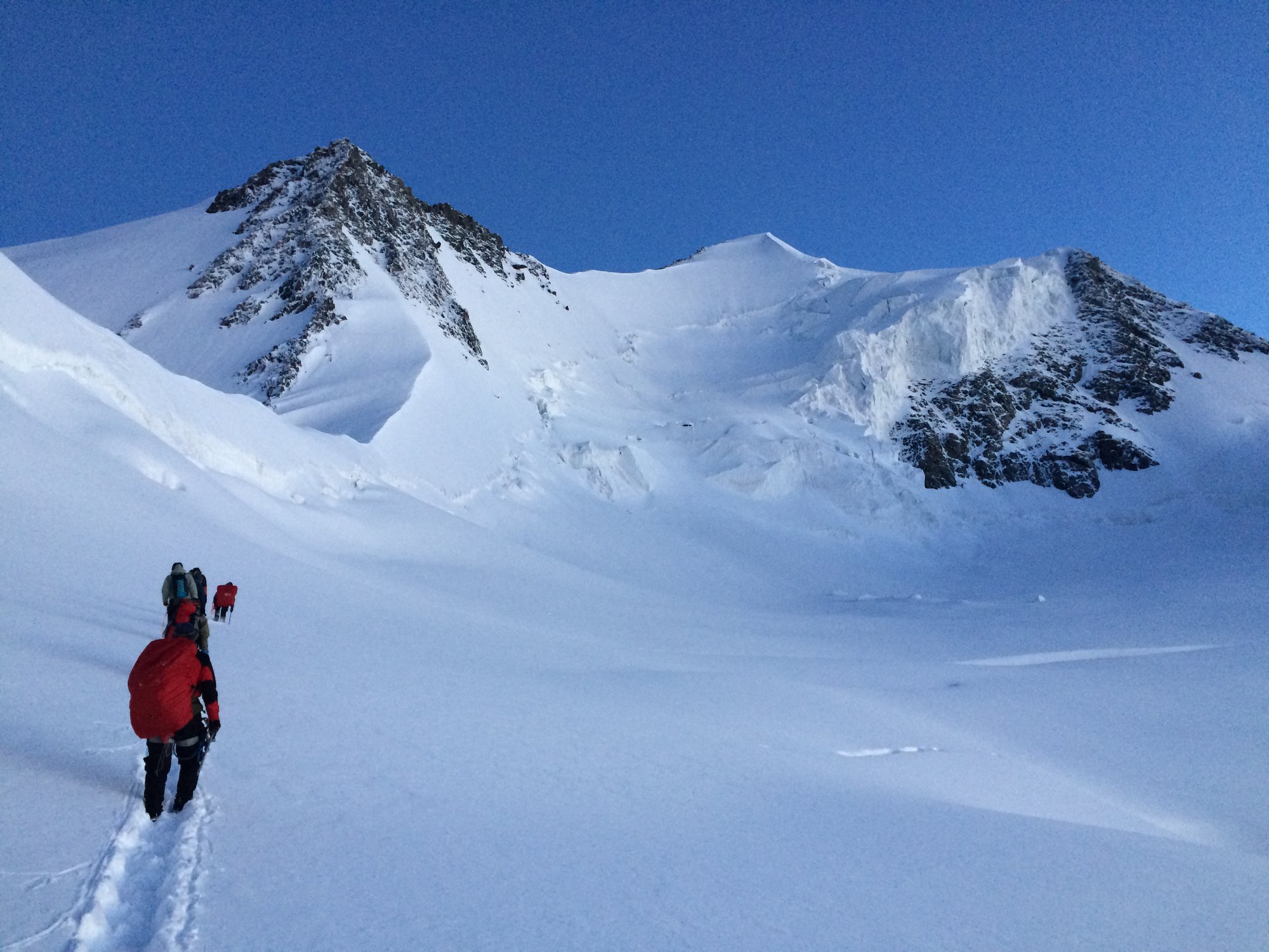 Солнце еще не вышло, но уже становится светло. При этом снег будто бы отражает синеву неба. Снято на iPhone 5s