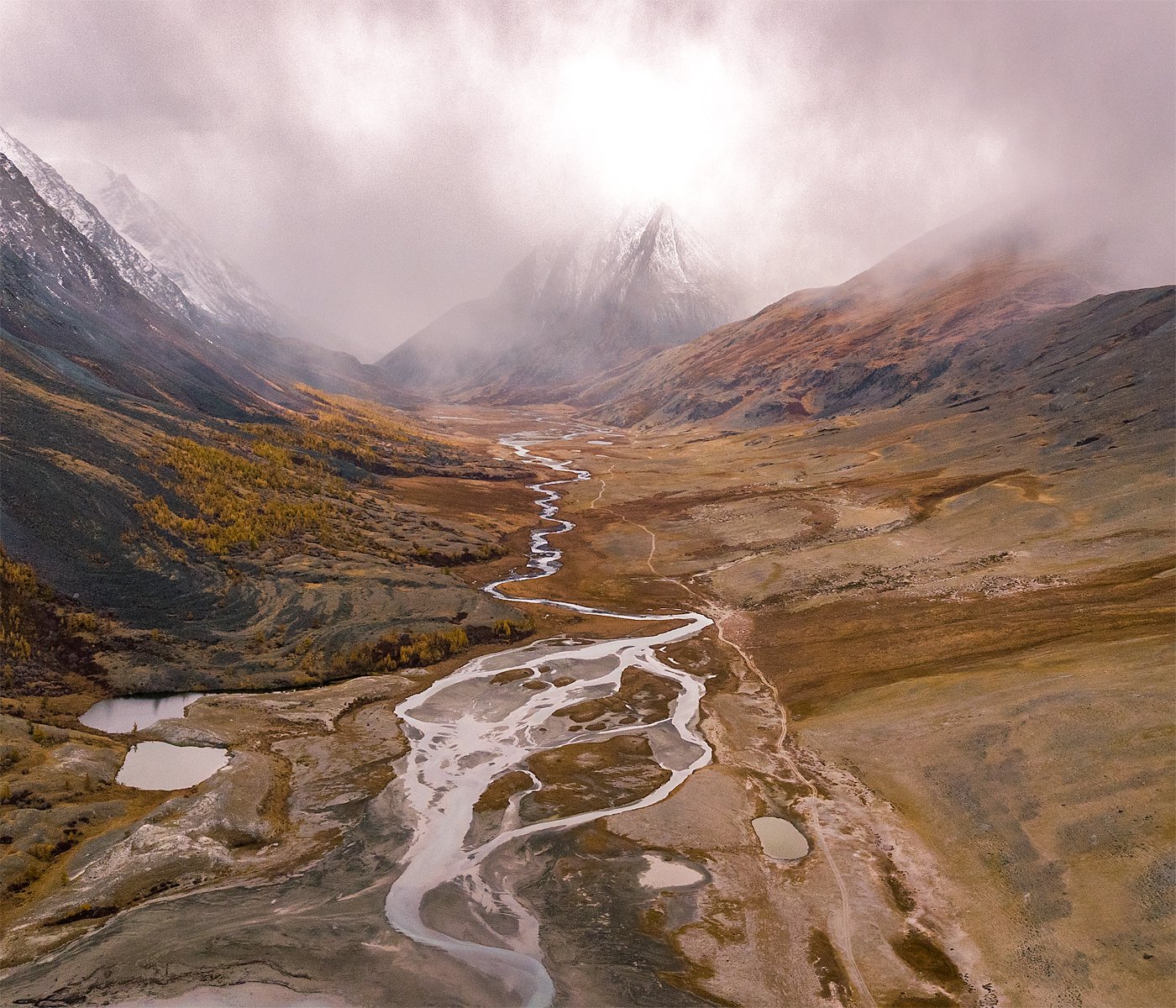 В горах погода меняется быстро. Во время нахождения в долине реки Аккол налетела снежная буря, которую пытался снять на фоне гор. Горный Алтай.