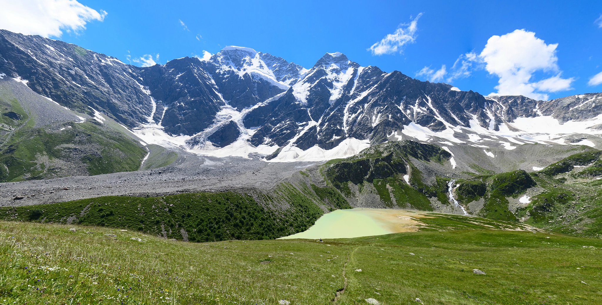 Ледник Северный Донгуз-Орун, расположенный на одноименной горе напротив ... известен своей формой в виде цифры 7, за что и прозван «Семеркой».