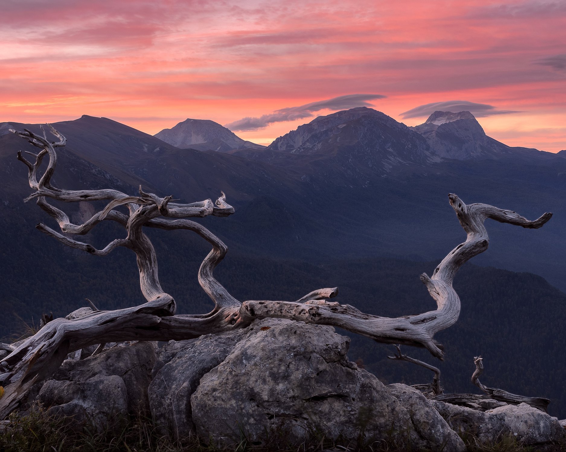 Вид с горы Черногор на три вершины - Оштен, Пшехо-су и Фишт в Кавказском биосферном заповеднике