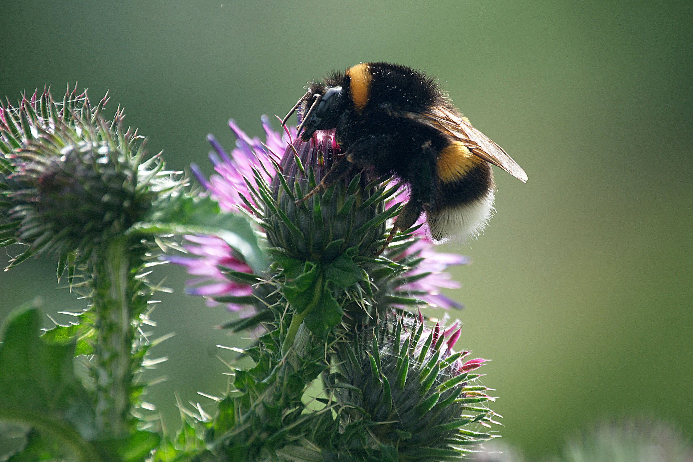 Цветы репейника являются лакомством,где могут собрать нектар шмели и другие насекомые.