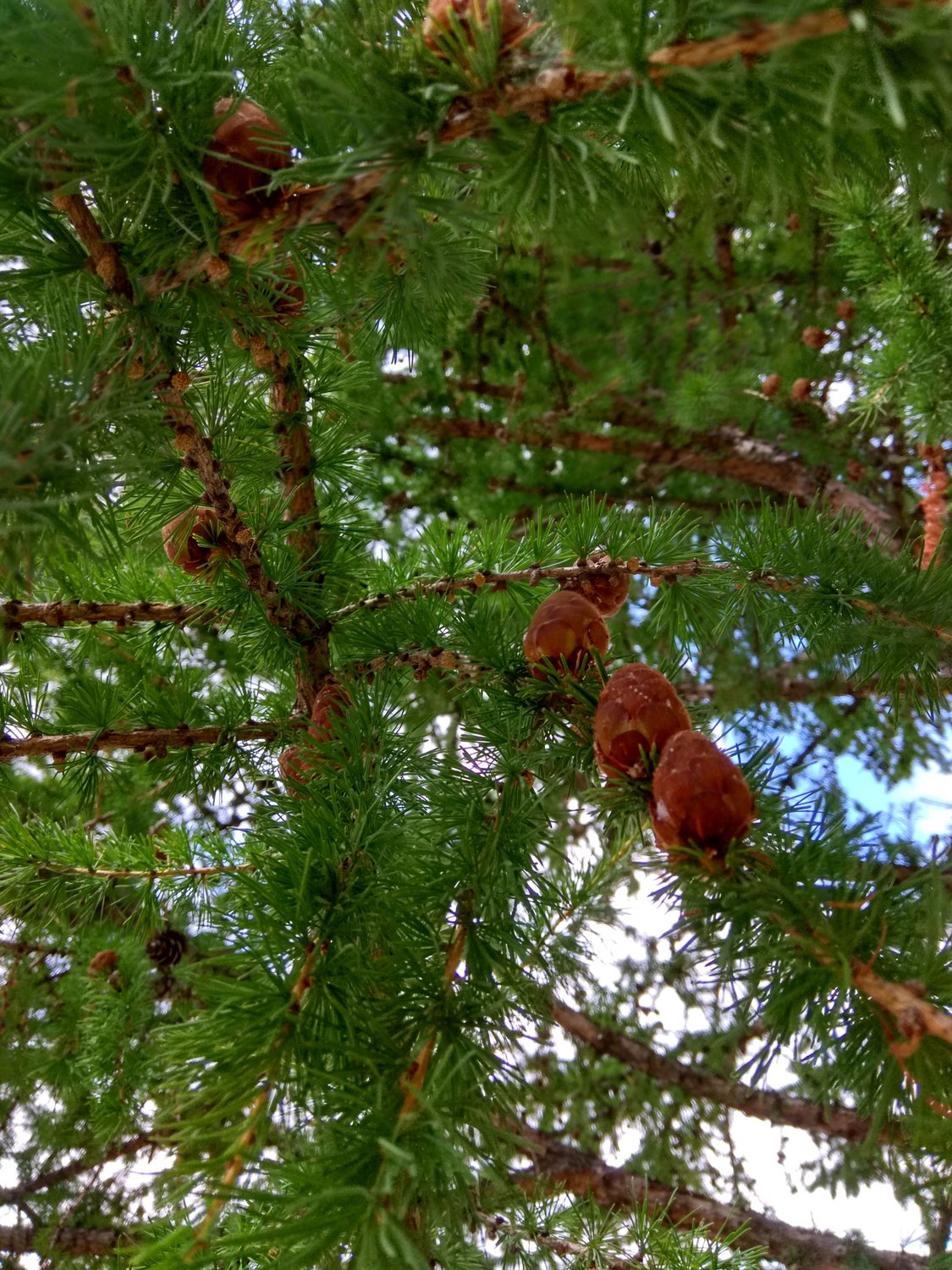 В прохладной тени лиственницы.