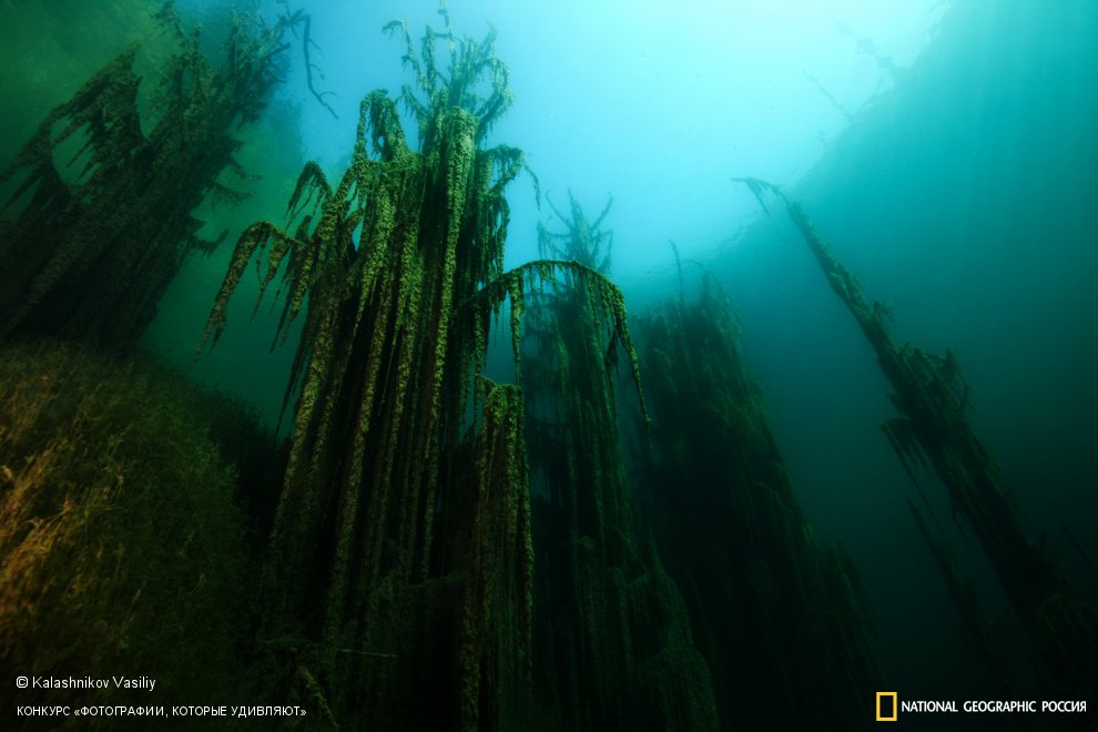 Более 100 лет назад во время сильного землятрясения, оползень перегородил небольшую реку в ущелье, похоронив в ледяной воде десятки величественных тянь шаньских елей. Хвойные деревья оказались затопленными не полностью. Их вершины, отполированные солнцем и ветром, на 10-15 метров гордо возвышающиеся над зеркалом озера, как мачты затонувшей эскадры. Под водой, обросшие столетними отложениями мха и ила, деревья создают уникальную картину