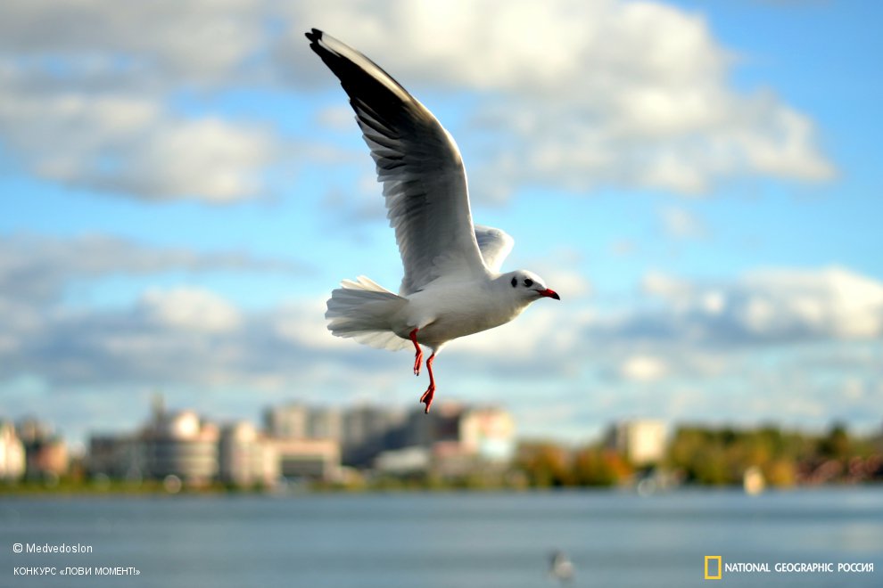 Чаек люди кормили хлебом, чайки пикировали за ним вниз и взлетали вверх, одну из них мне удалось поймать в полете.