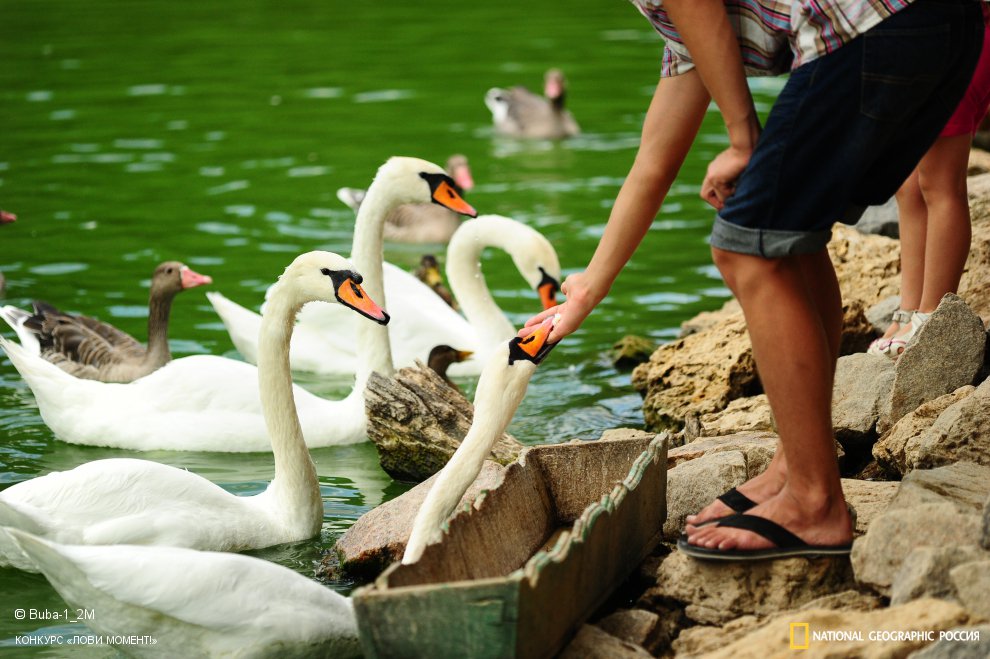 Парень кормил с рук лебедей, один из них вместе с куском хлеба, чуть не откусил эту самую руку...
