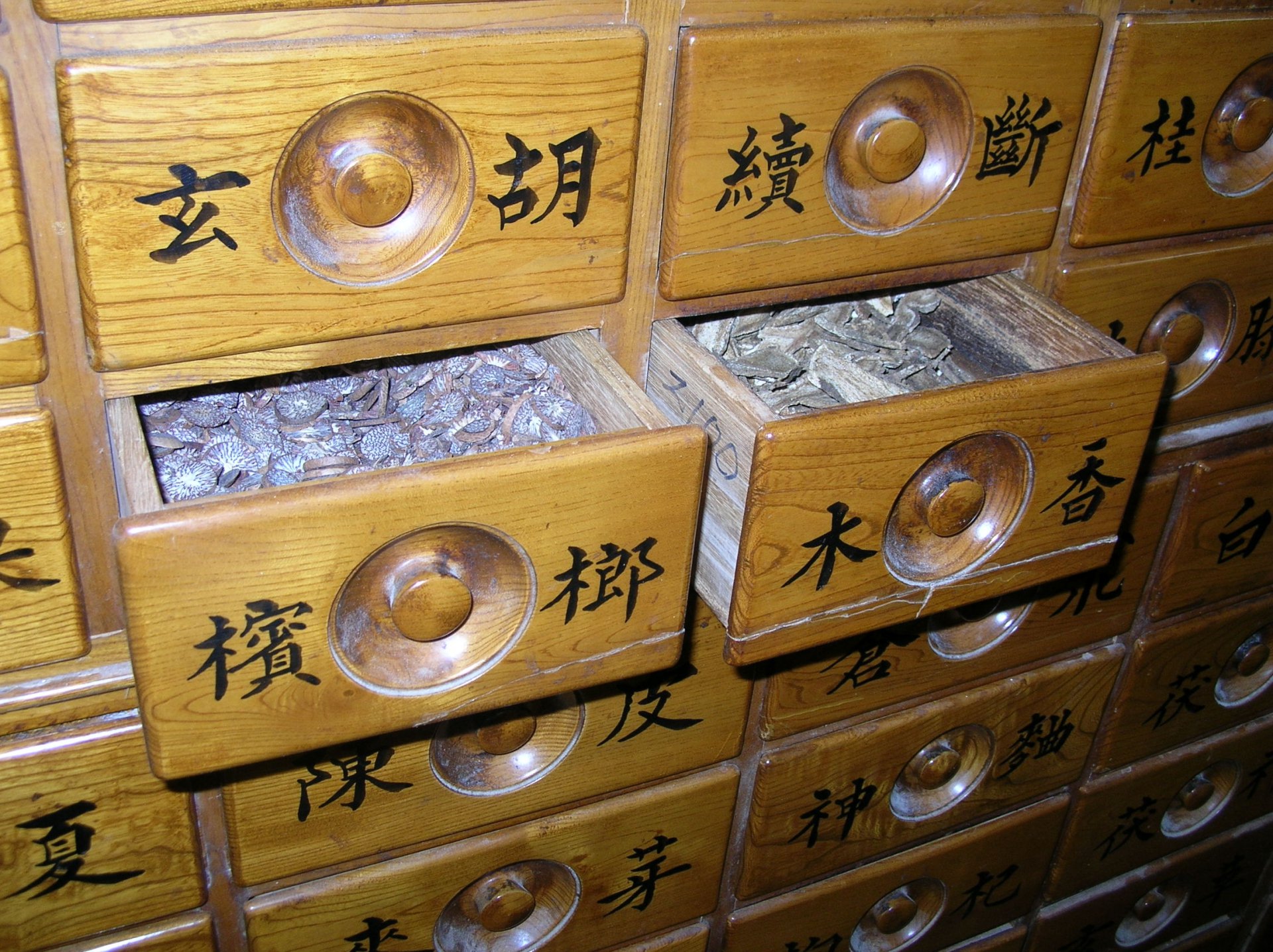 Аптека восточной медицины в клинике Dong-Eui Medical Center. В таких ящиках находятся ингредиенты для изготовления лекарств корейской медицины. Их смешивают между собой, делают настой и выдают пациентам. Лекарства изготовляются для каждого пациента индивидуально по рецепту, составленному корейским врачом.