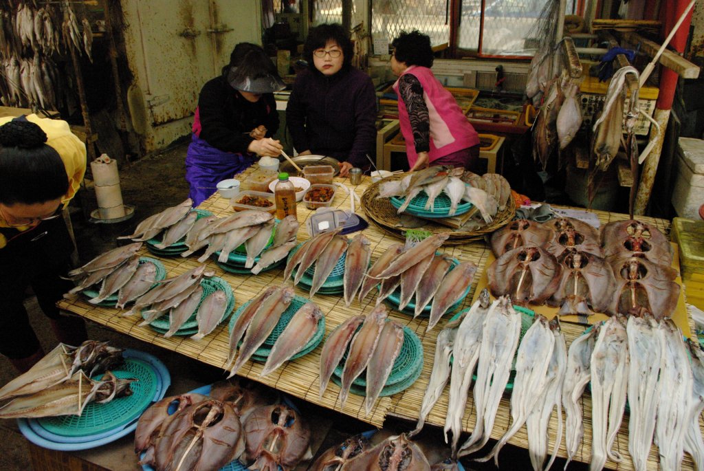 Рыбный рынок Чагальчи в Пусане. Пусан - второй по величине город Южной Кореи. Портовый город, морская столица государства. Не удивительно, что самая главная достопримечательность Пусана - это огромный рыбный рынок, который привлекает туристов со всего мира. И там есть на что посмотреть! С самого раннего утра, ещё до рассвета, в порт стягиваются рыбацкие суда со всей округи, чтобы продать свой улов. Рыбный рынок Чагальчи в Пусане.