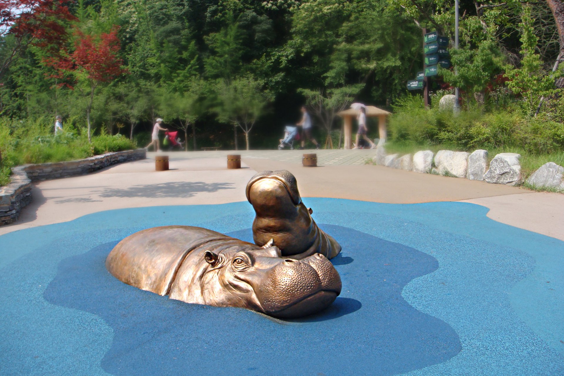 Таких милых бегемотиков и другие фигурки зверей можно увидеть в Большом Сеульском Зоопарке в городе Квачхон
