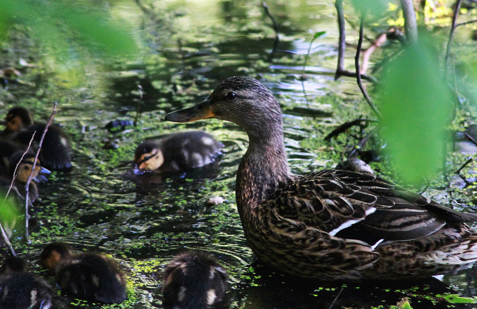 Утка зорко присматривала за утятами, следила, что бы никто не потерялся из них.