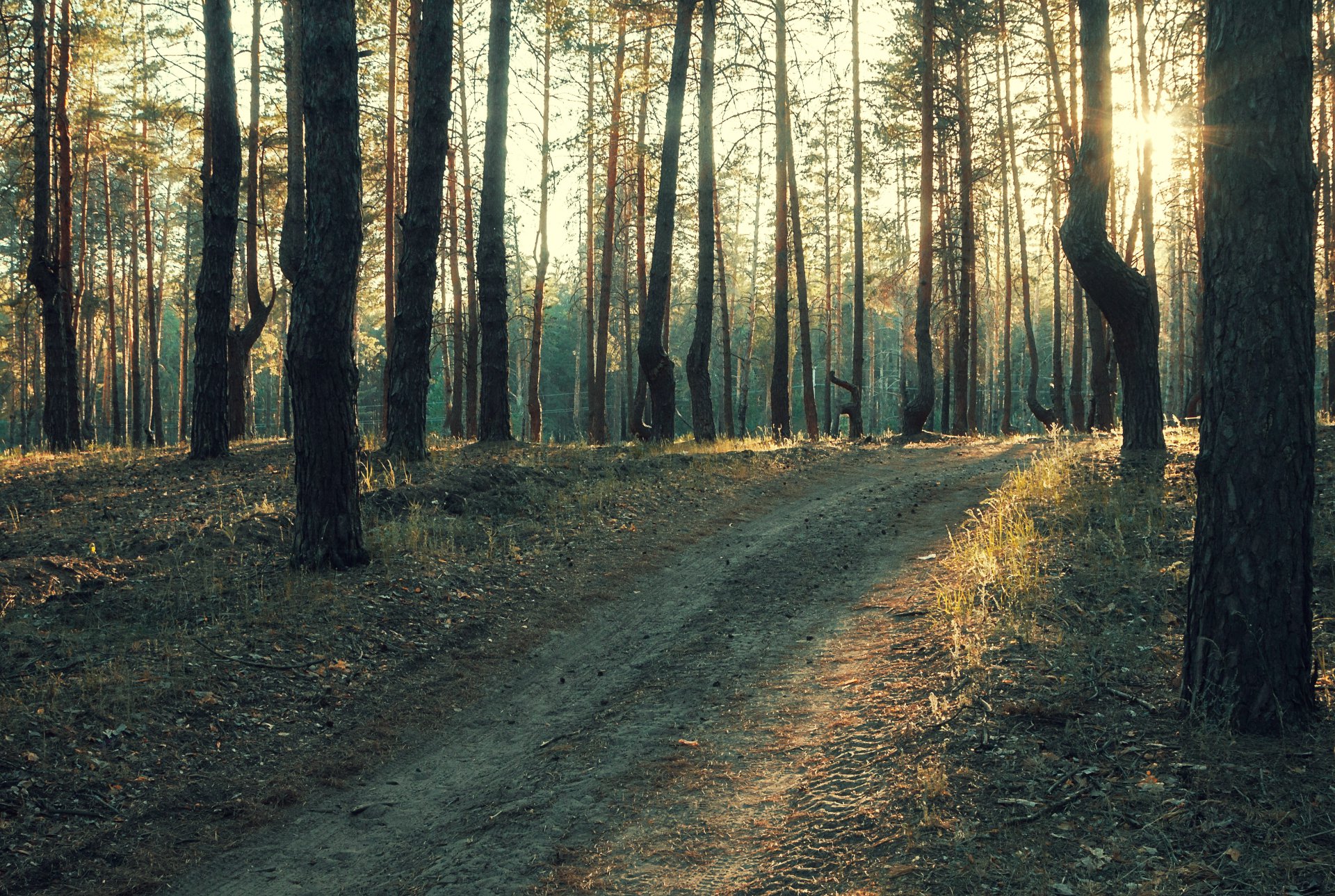 Дорога в сосновом лесу
