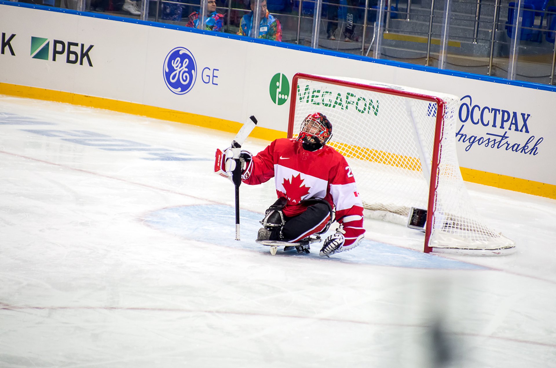 Голкипер сборной Канады по следж-хоккею, обыгравшей команду Норвегии в матче за третье место (3:0) на Паралимпийских играх в Сочи