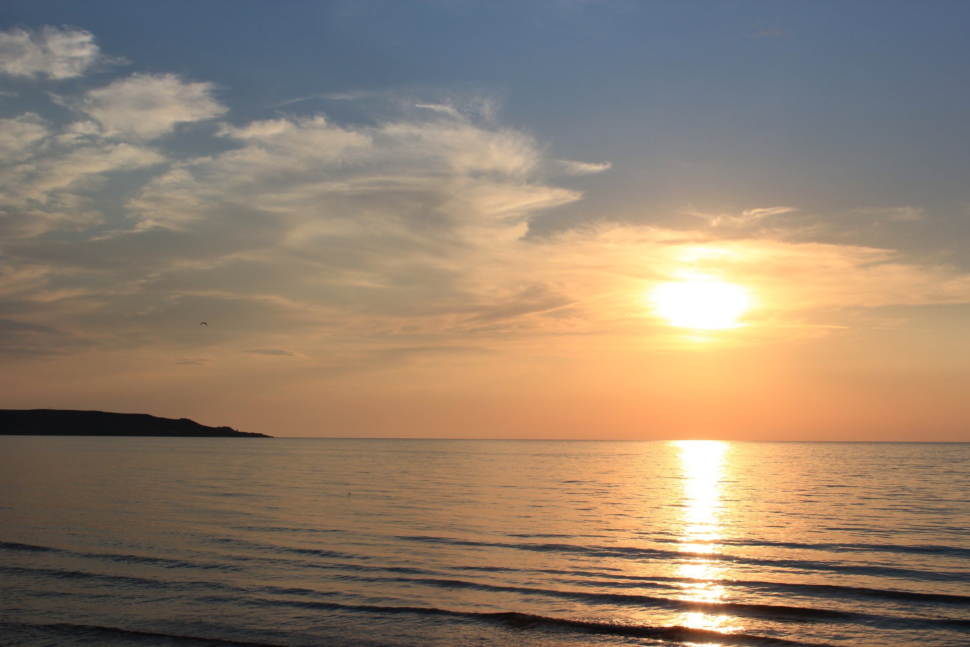 Закат на Азовском море в бухте Морской пехоты на Керченском полуострове, Крым