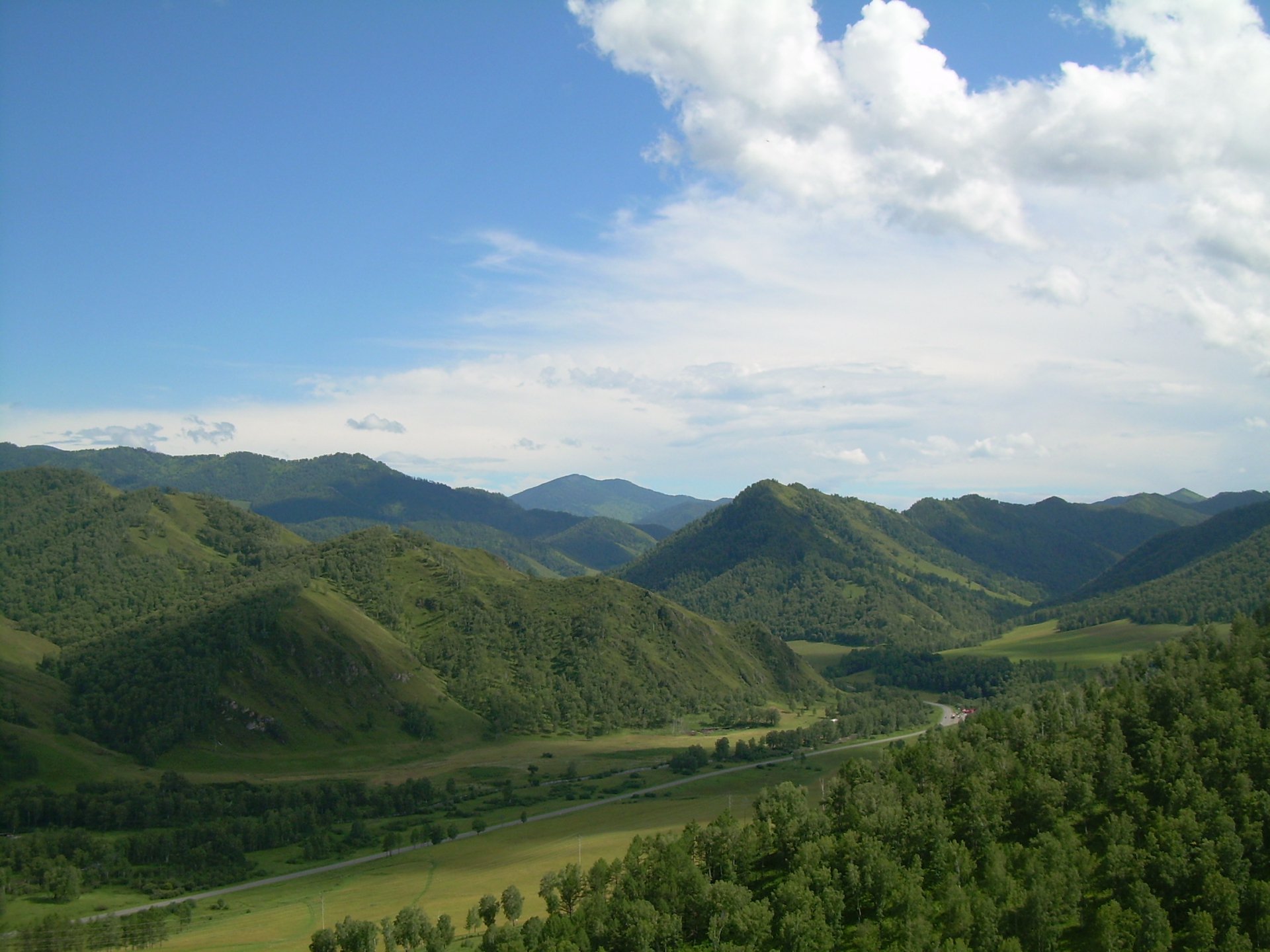 Горный Алтай, рядом с поселком Манжерок, вид с гор. Птичий полет!