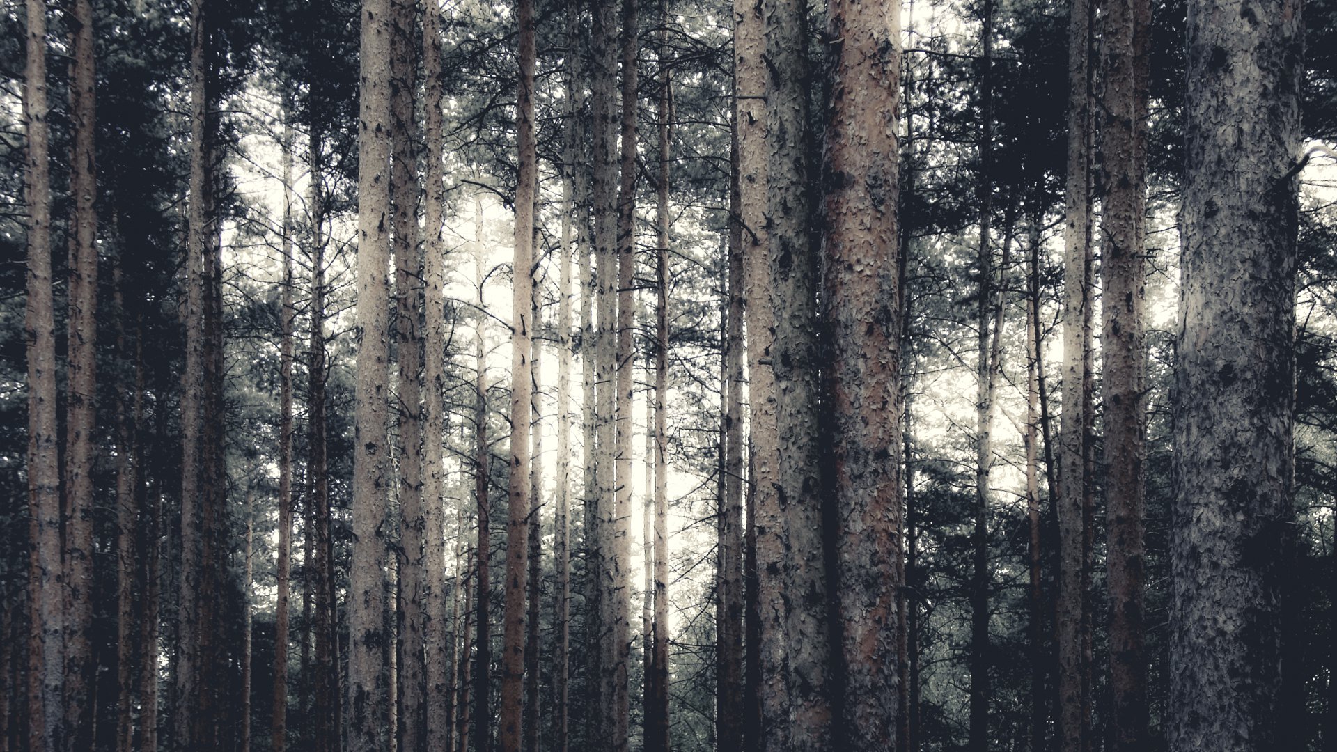 фотография сосен и елей, снята в лесах Ленинградской области, Россия