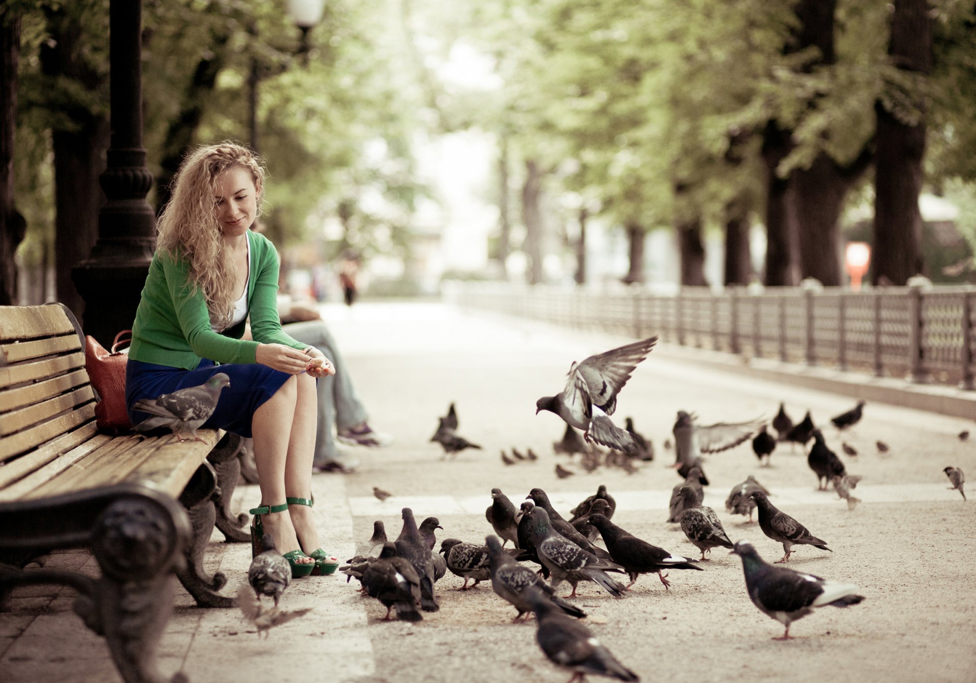 Утро на Патриарших прудах в Москве. Кто-то бегает по утрам, кто-то прогуливается и созерцает красоту, кто-то гуляет с собакой, а она пришла покормить птиц. Радостно на душе от доброты.