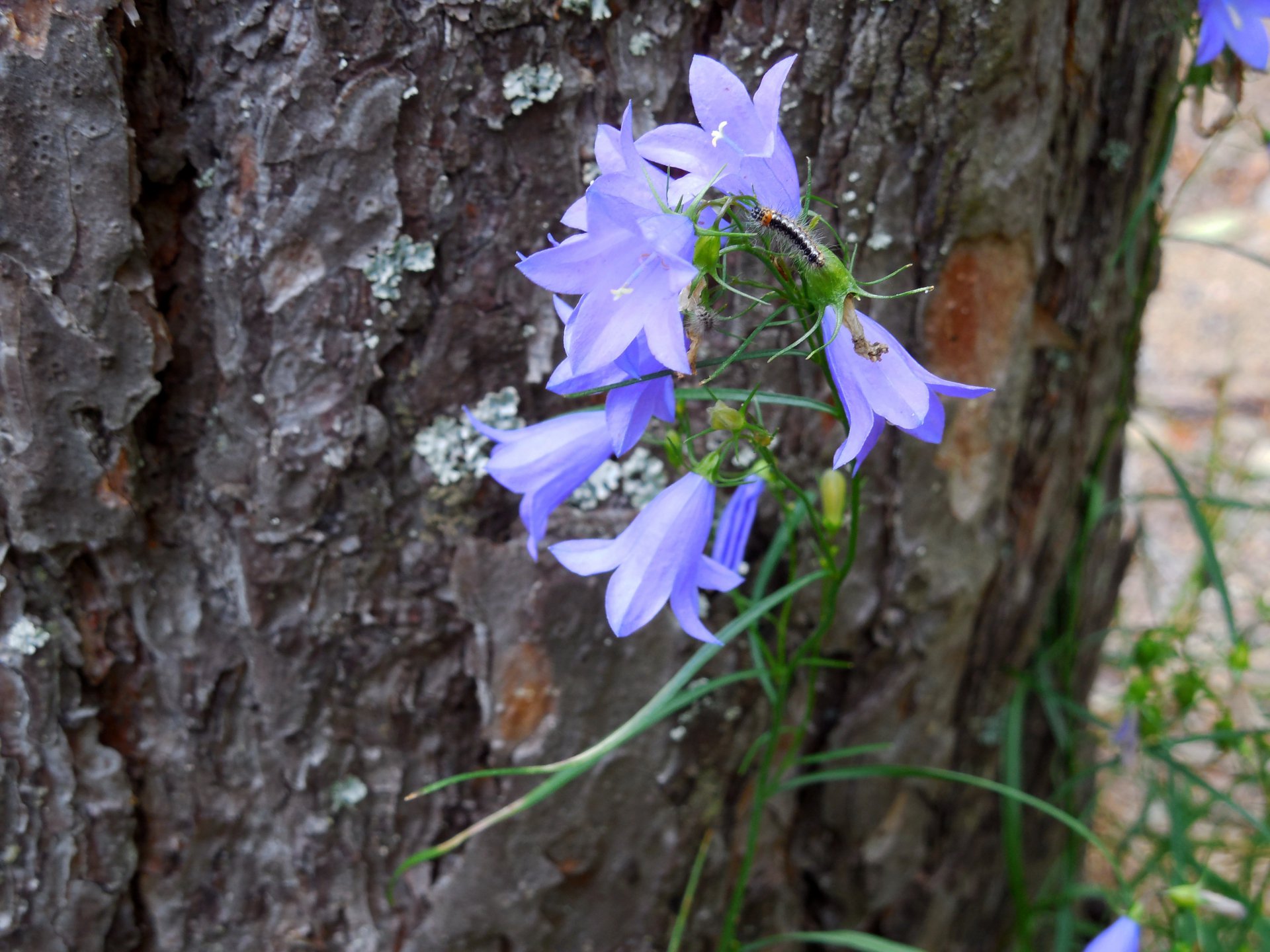 Эта гусеница вполне могла проголодаться. Или, что вероятно, она пошла на музыкальный концерт "колокольчиков", полагая, что это настоящие колокола. Гусеница тянется к прекрасному.