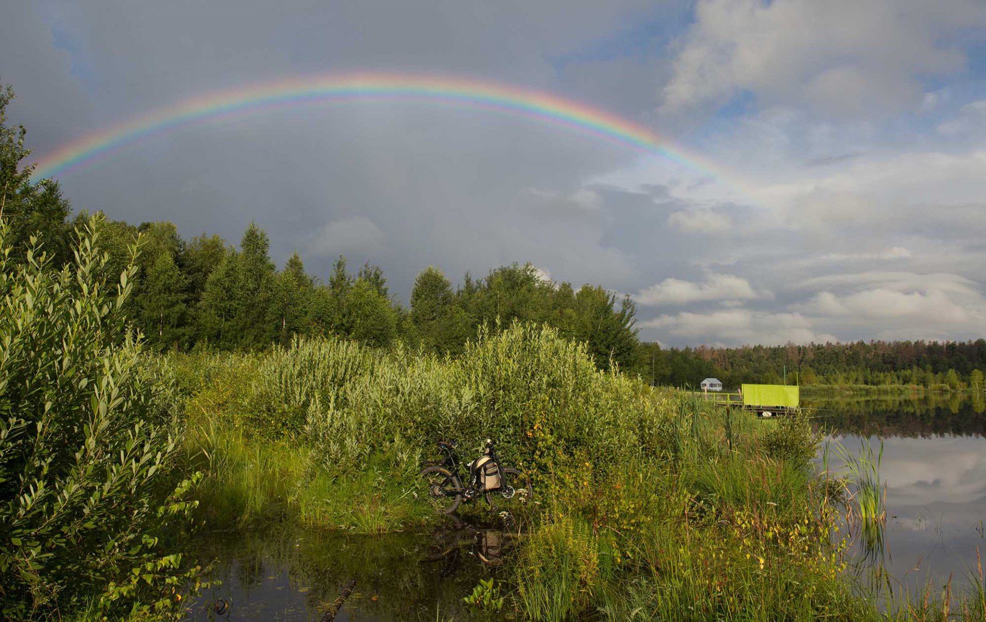 Утренняя радуга над озером Юшино г. Балашиха, в простонародье озеро носит название "Второе озеро", на берегу озера расположен всеросийский институт пожарной охраны (ВНИИПО)