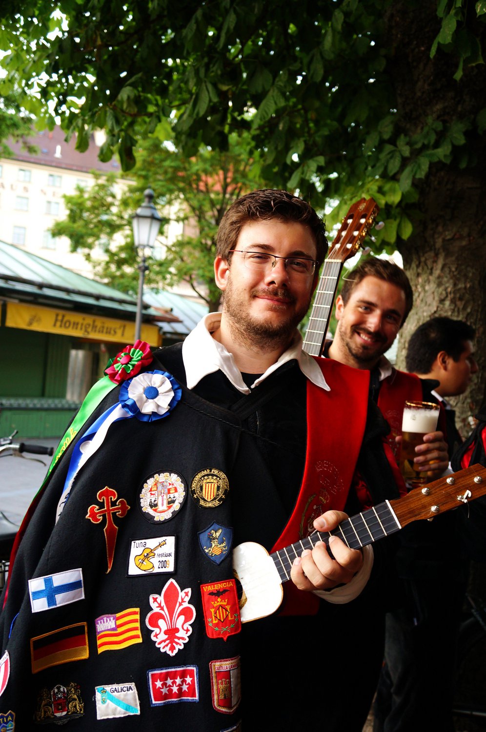 Ребята в выходной, в пивных садах Мюнхена веселят отдыхающих.
