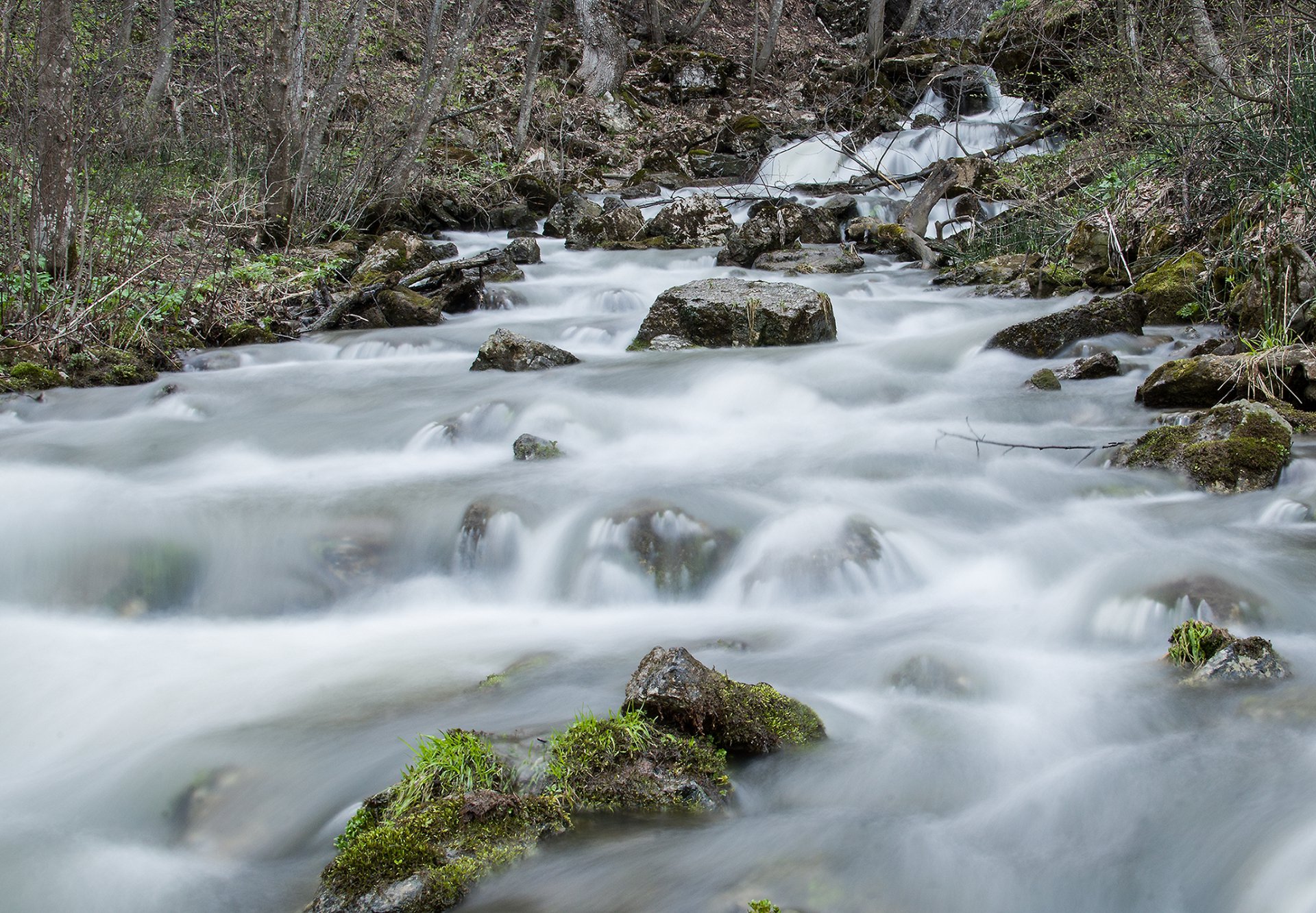 Исчезающий и вновь бьющий из по скалы ручей Савка. Май 2014г. территория национального парка "Башкирия".