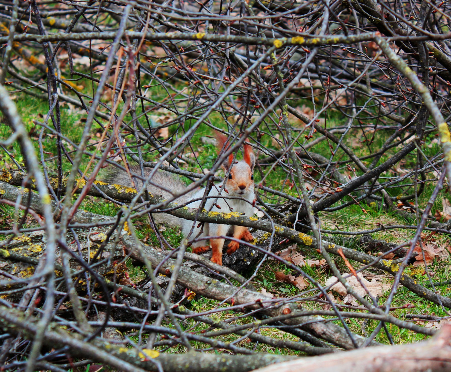 Спрятался в ветках,так безопаснее